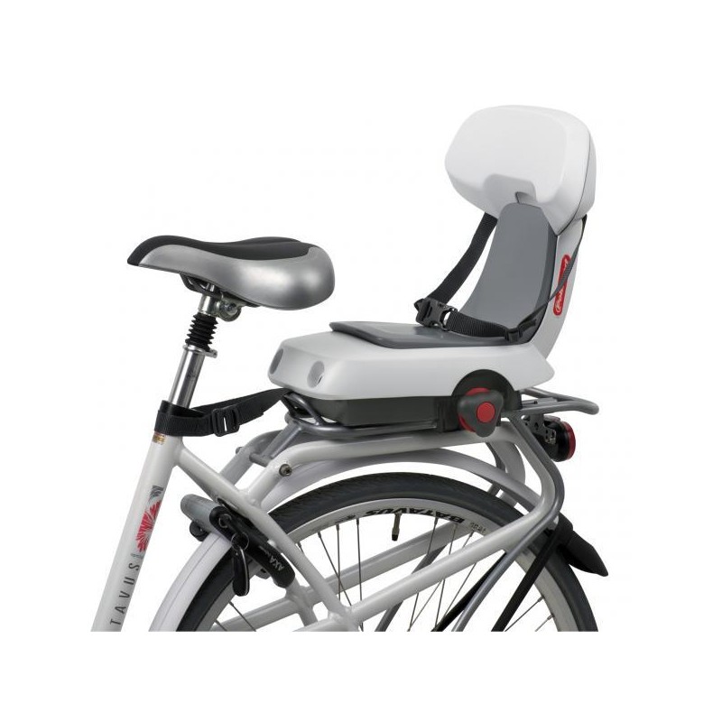 Siège enfant junior robuste avec dos fixe facile à monter et réglable sur porte-bagage avec largeur max. de 175mm avec système sécuritaire QST Ergonomique